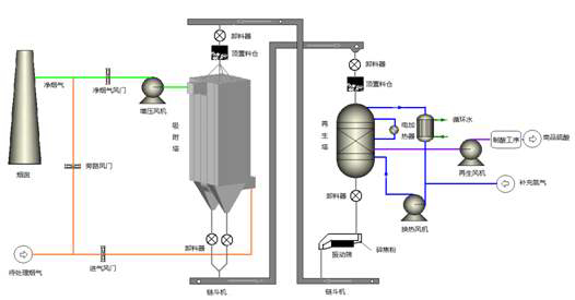 SDS干法脫酸噴射技術是將脫硫劑(20-25μm)均勻噴射在管道內(nèi),脫硫劑在管道內(nèi),比表面積迅速增大,與酸性煙氣充分接觸,發(fā)生物理、化學反應,煙氣中的SO2等酸性物質(zhì)被吸收凈化。