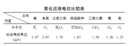 ? ? ? ?臭氧的氧化能力極強(qiáng),從下表可知,臭氧的氧化還原電位僅次于氟,比過(guò)氧化氫、高錳酸鉀等都高。此外,臭氧的反應(yīng)產(chǎn)物是氧氣,所以它是一種清潔型的強(qiáng)氧化劑。